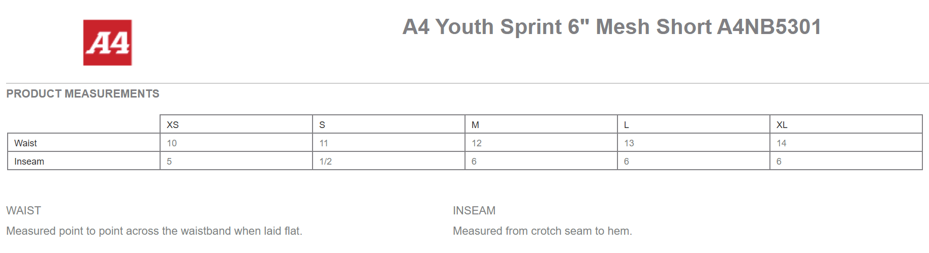 A4 Youth Sprint 6" Mesh Short A4NB5301